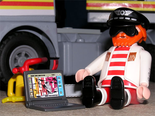 Und es kommt, wie es kommen musste: Er beginnt von seinem neuen Begleitfahrzeug zu träumen und sanft schlummert Hugo ein. Als HvB aufwacht, ist es tiefe Nacht. "Oh menno, hoffentlich schaffe ich die Anmeldung noch! Wo ist jetzt wieder dieser blöde Computer hin?"