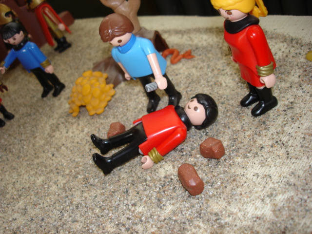 Wie üblich schaut der Rest der Crew zu, während der Captain die Drecksarbeit machen muss. Wahrscheinlich sind die Romulaner schuld.