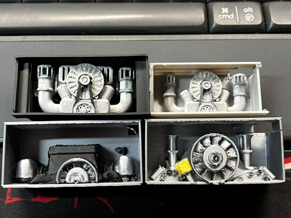 Zur Motorenstudie: bestimmt da der Drucker die Feinheit, oder könnte man mit veränderten Einstellungen, z.B. das Lüfterrad glatter bekommen? (Hab da so gar keine Ahnung vom 3D-Druck Handling). Sorry vollkommen überlesen, der Hauptgrund für die unsauberen Flächen ist die Umwandlung von 2D Fotos zu e...