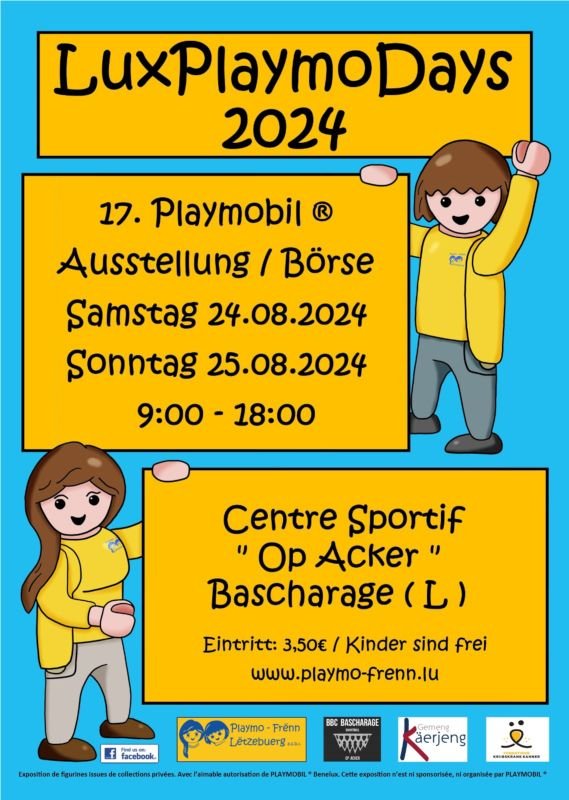 wir freuen uns, euch mitteilen zu können, dass 2024 die 17. LuxPlaymoDays wieder in der Sportshalle "Op Acker" in Bascharage statt finden werden.