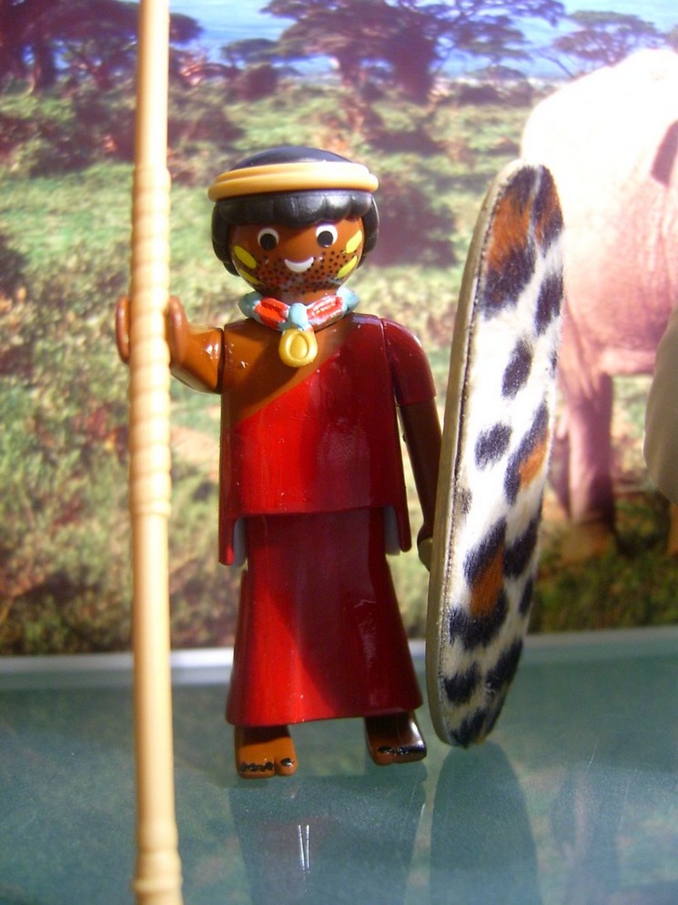 Mein Massai mit Schmuck, neuem Kleid und Schildbezug.