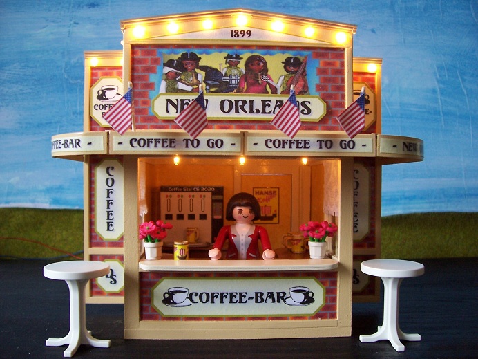 Hallo, zur Zeit entsteht in meiner Werkstatt ein neues Kirmesgeschäft. Es handelt sich um einen Kaffee-Ausschank. Das Geschäft fertige ich in Containerform. Durch diese Bauweise ist es schnell und leicht auf- und abbaubar. Und wegen der kleinen Grundmaße (Front 195 mm, Tiefe 140 mm), ist es vielseit...