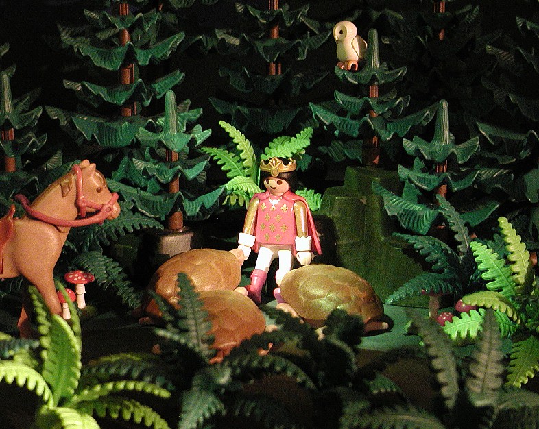 Am späten Nachmittag war ihr Ziel nicht mehr weit. Doch bevor sie am See angekommen war, fand Elena in der Nähe des Wegrandes drei Schildkröten, die irgend jemand auf den Rücken gedreht haben musste. Hilflos schaukelten sie hin und her und versuchten wieder auf ihre Füße zu kommen. Die Prinzessin stieg vom Pferd und half den armen Tieren wieder auf die Beine. Dankbar schmiegten sie sich dafür an die Prinzessin. Sie hatte das Gefühl, dass die Schildkröten ihr etwas sagen wollten. Aber sie begriff nicht was. Winkend verabschiedete sie sich von den Tieren und ritt weiter.
