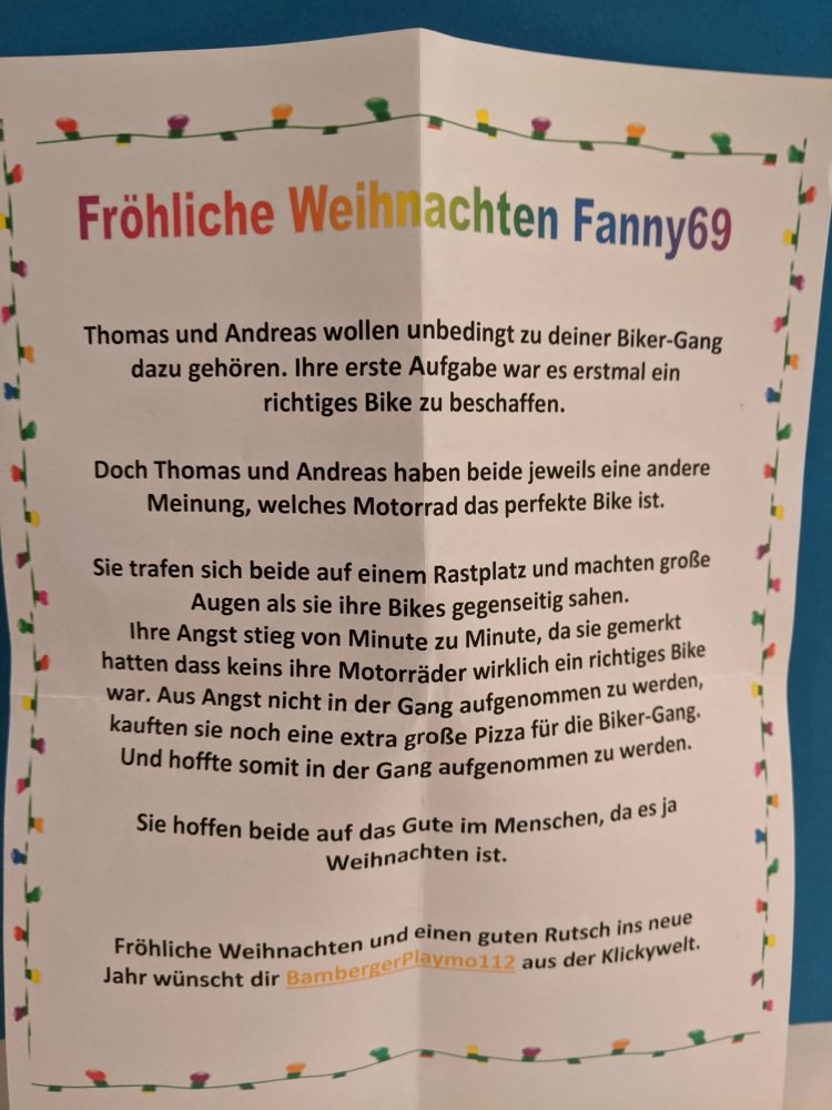 Vielen Dank an BambergerPlaymo112 für dieses tolle Wichtelgeschenk!
