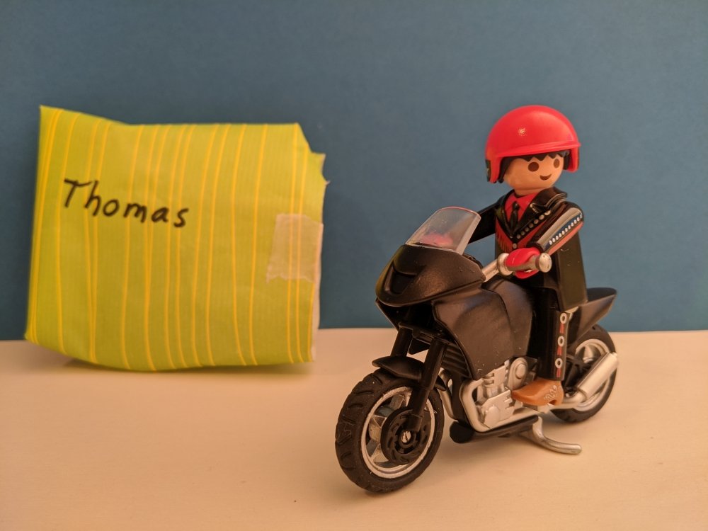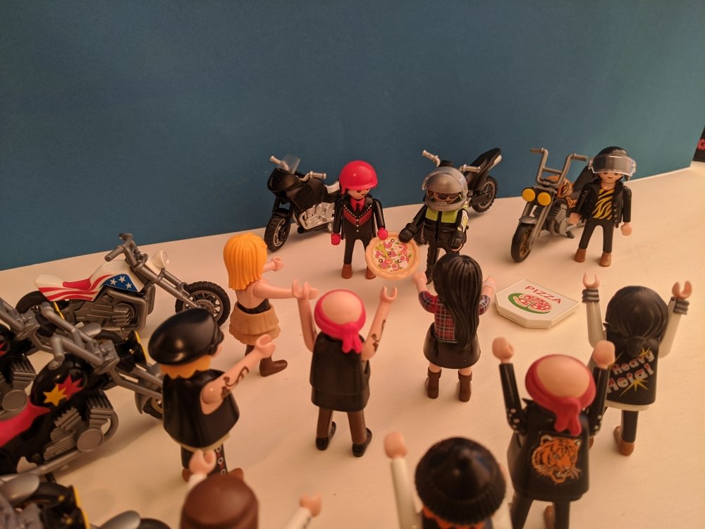 Thomas und Andreas nahmen ihren ganzen Mut zusammen, überreichten eine Pizza, in der Hoffnung in meine Biker-Gang aufgenommen zu werden!