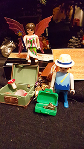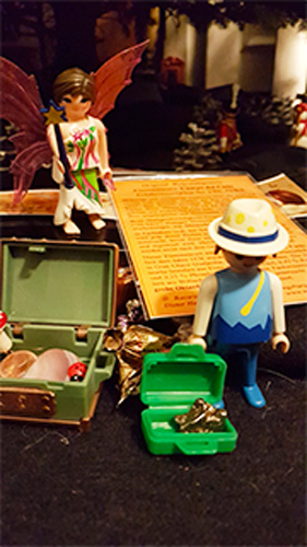 auch ich habe meinen Wichtel fein ausgepackt und war ganz gerührt! Ich habe nämlich nicht nur zwei Figuren und Süßigkeiten sondern auch eine Truhe mit gaaanz vielen Glücksbringern UND eine STERNSCHNUPPE (mit Zertifikat!) erhalten.