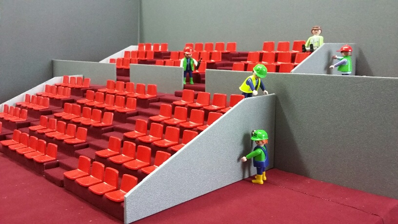 Die Trittschallplatten kommen an die Seiten der Tribünen