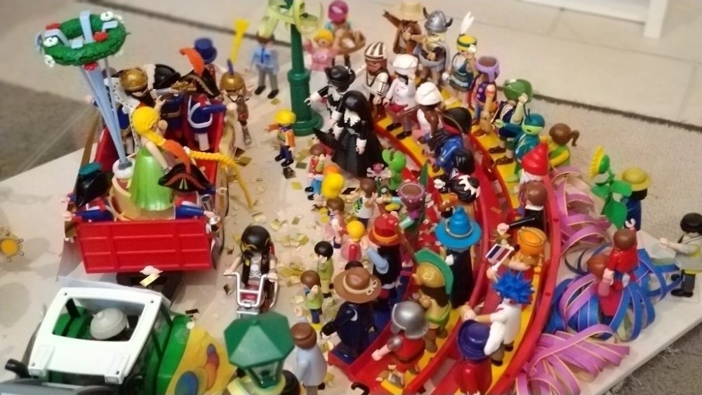 “Nochmal, Thraker. Ich kenne keine Faschingsgruppe Namens Buntes Treiben . Ich weiß auch nichts von einem Umzug. Du hast dich verlaufen und bist jetzt im falschen Diorama. Und jetzt verzieh dich, wir stecken voll in der Vorbereitung für die Französische Revolution.“