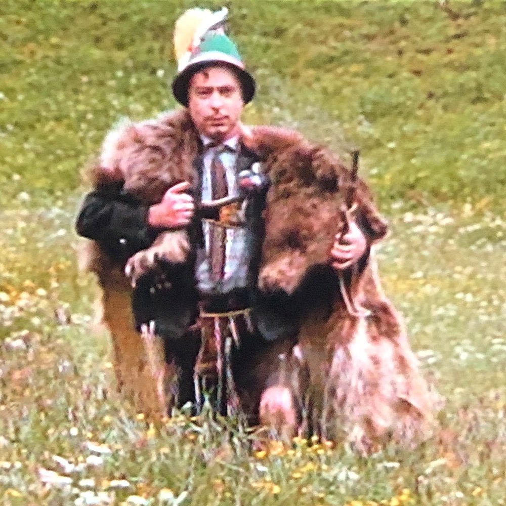 Angelehnt an die Figur des Schürzenjägers und Meisterschützen aus der Heimatfilm-Parodie "Geierwally" von 1987.