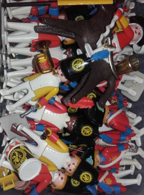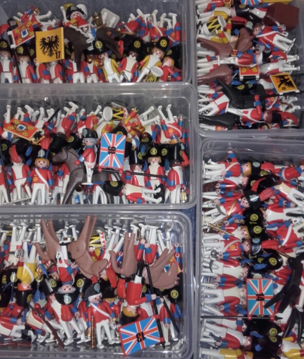 Die gelb/roten, wurden mal gesteckt, ausprobiert, waren aber nie genug, weil gelbe Figuren fehlten und so schnell wieder zu normalen Variante (rot/weiss) zurück gekehrt. Mit grün und blau wurde auch experimentiert. Die Anlehnung war damals der Film Krieg und Frieden, die schönen Uniformen haben es mir angetan.
