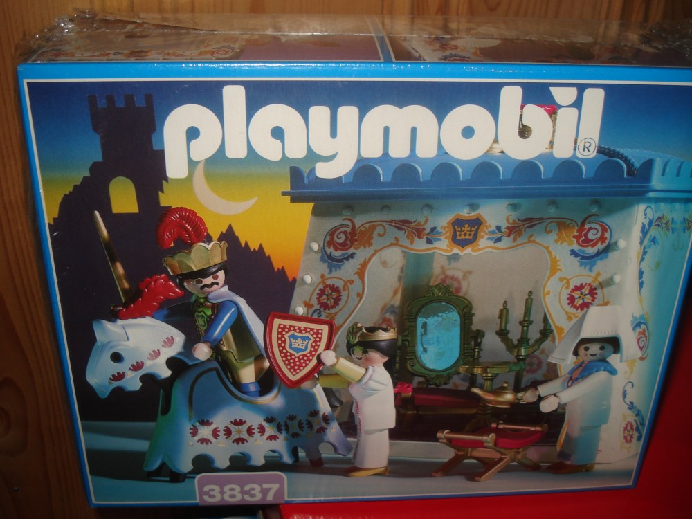 Aber nun kommt die eigentliche Geschichte dieser Sets. Der Verkäufer war Mitte der 90er Jahre Angestellter in einer Sparkassenfiliale als da ein Umbau der Kellerräume durchgeführt werden sollte. Im oblag die Aufgabe diese Räume zu entrümpeln. Dabei fand er (echt unglaublich) eine halbe Euro-Palette voll mit ungeöffneten Playmobil Packungen. Diese Sets wurden wie sich eine ältere Angestellte noch erinnern konnte im Jahr 1983/84 für ein Preisausschreiben der Sparkasse von Playmobil geliefert. Dieses Preisausschreiben hatte aber wohl nicht den erhofften Erfolg gebracht und so blieben viele Sets zurück und wurden im Keller vergessen.