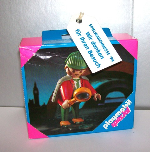 Einer der schönste Verpackungen aus meiner Sammlung. Diese Set kommt aus Japan und wurde durch die Japanische Firma Meiji (Fabrikant von Keksen und Pralinen) hergestellt. Es gab sicher 5 verschiedene Serien mit Playmobil Verpackungen mit jeweils 20 verschiedene Sets. Jede Set hat ein Aufkleber worauf die Inhalt zu sehen war. Diese Serien waren vermutlich nicht lange im Handel und wurden in die achtziger Jahren in Zusammenhang mit Keksen Verpackungen verkauft. Die Verpackungen waren besonders original, aber sind leider sehr schwer zu finden.