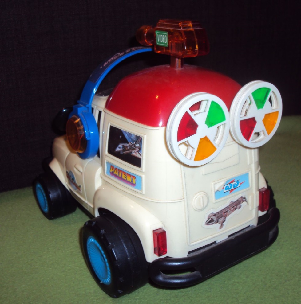 Er hat einen elektrischen Antrieb (siehe Bild) und hat 2 beleuchtete Lampen auf dem Dach und eine im vorderen Bereich.