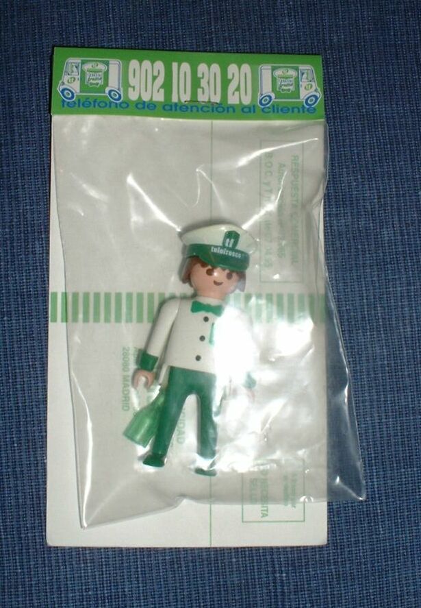"Playmobilfigur aus Spanien von der Firma Telefresco (Lieferdienst) aus dem Jahr 1998, die zusammen mit einer Postkarte für ein Preisauschreiben verteilt wurde."