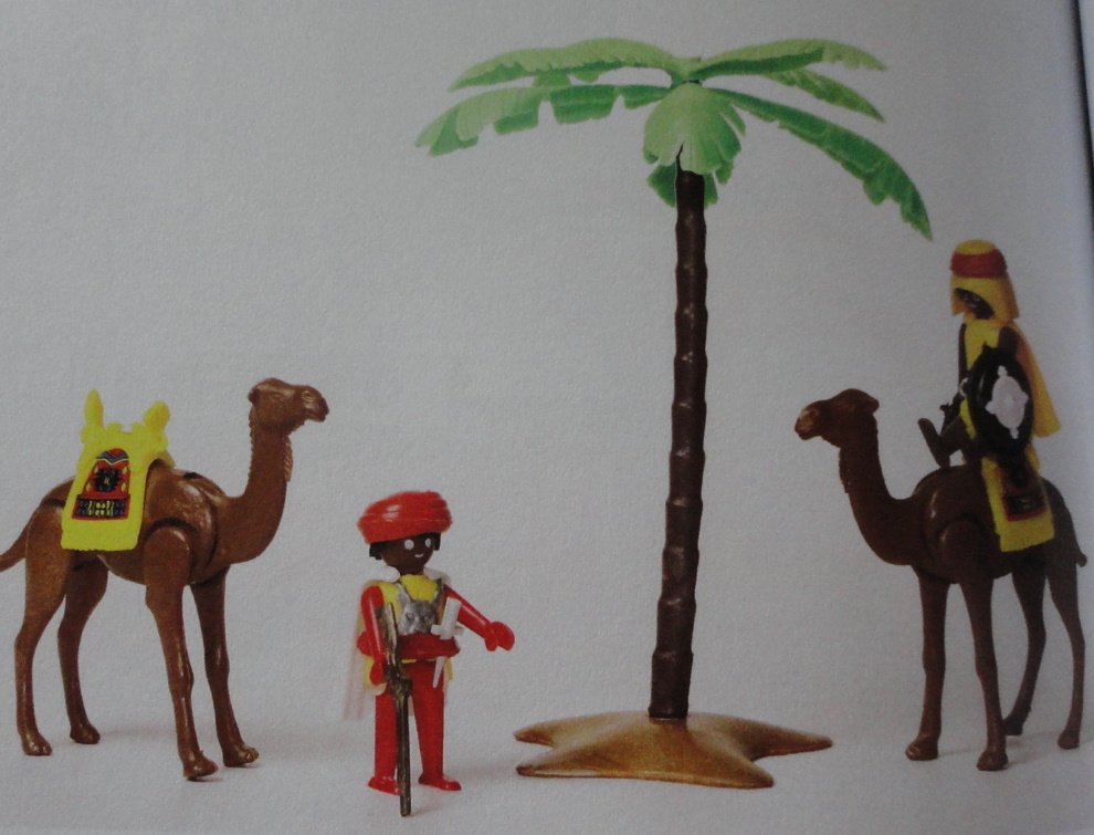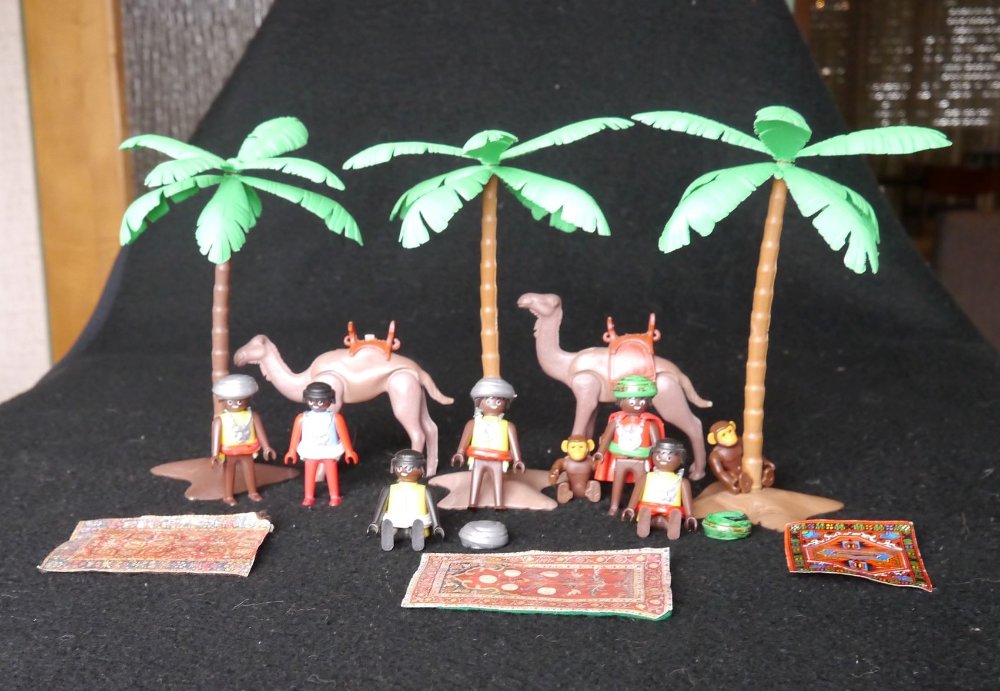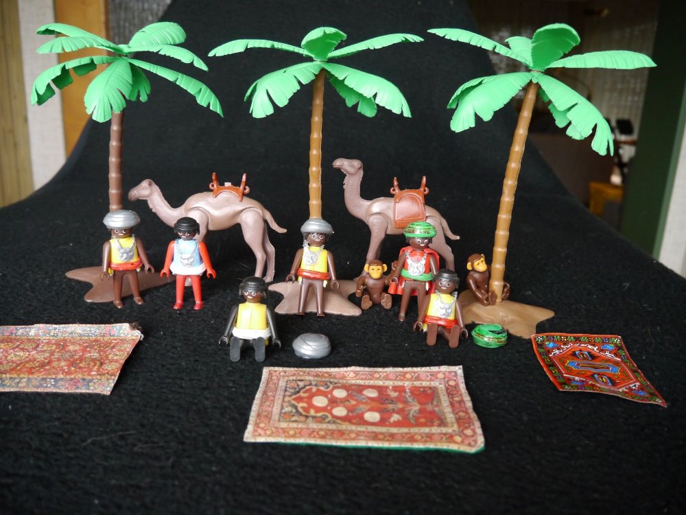 Ich weiß nicht, ob die zwei Affen und die Teppiche dazugehören oder nicht? Bei einem Kamel fehlt ein Teil des Sattels.