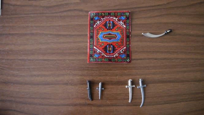habe ich den richtigen Teppich und (leider nur einmal) einen silbernen Säbel. Welche Waffen passen sonst zu den Arabern? Ich habe kurze Dolche, Messer und krumme Schwerte.