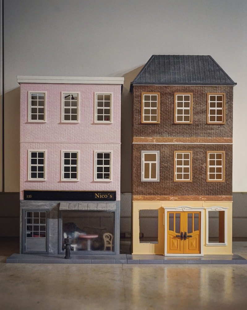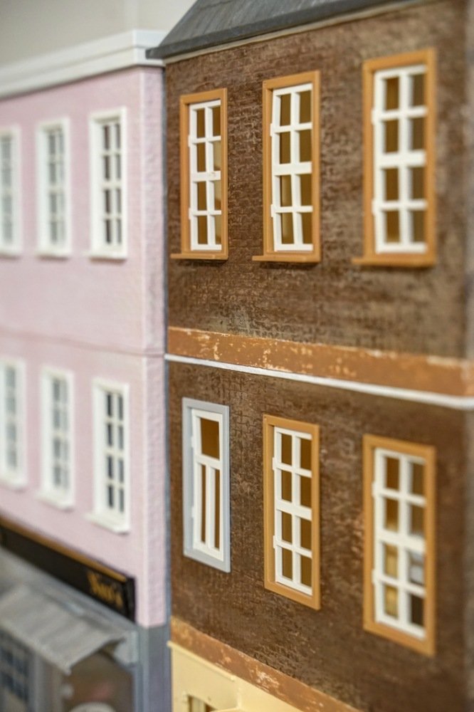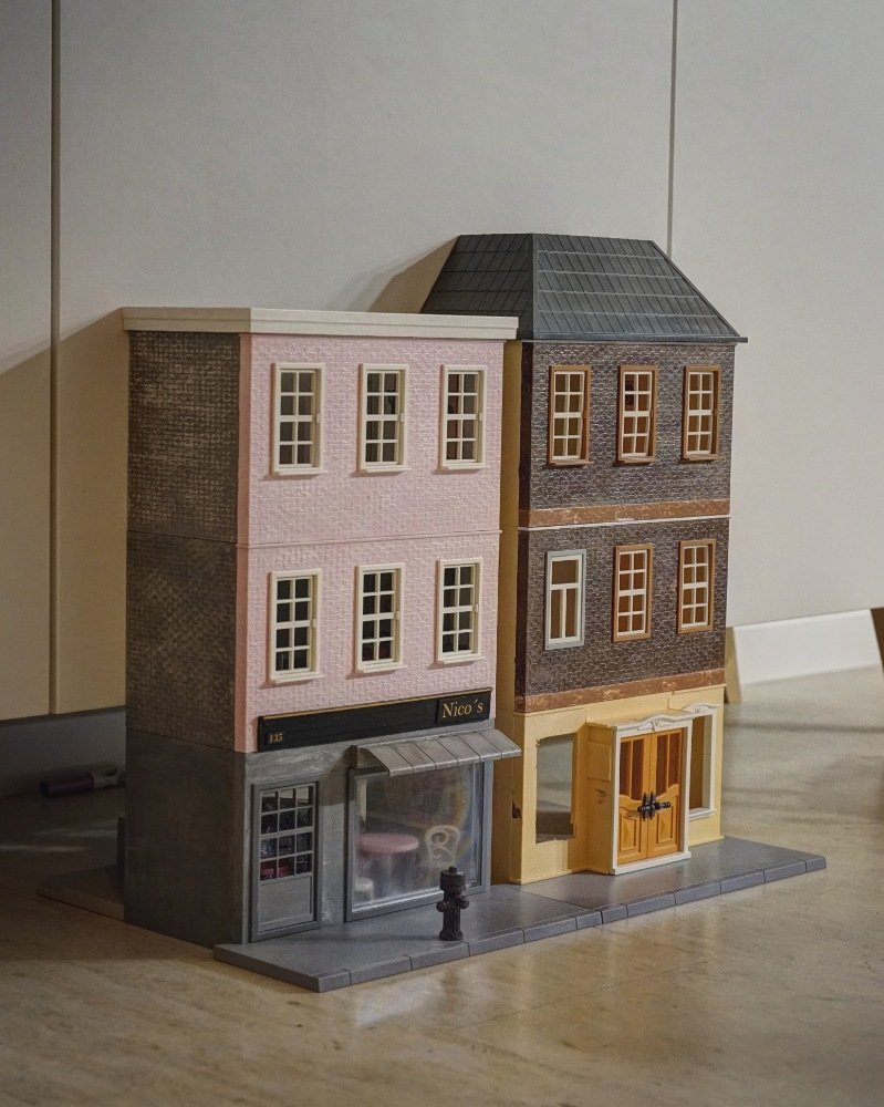 So, hat etwas gedauert und ist nur zur Veranschaulichung, zusammen gesteckt, EG gehört zu einem anderen Haus, in das braune kommt unten noch ein Laden, Dach wird wohl ein Flachdach mit Dachgarten, Seitenteile sind noch unbearbeitet...
