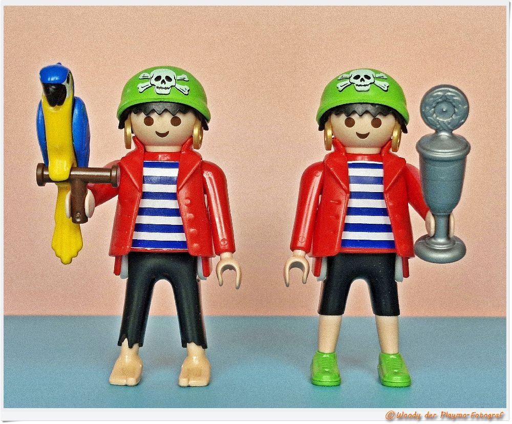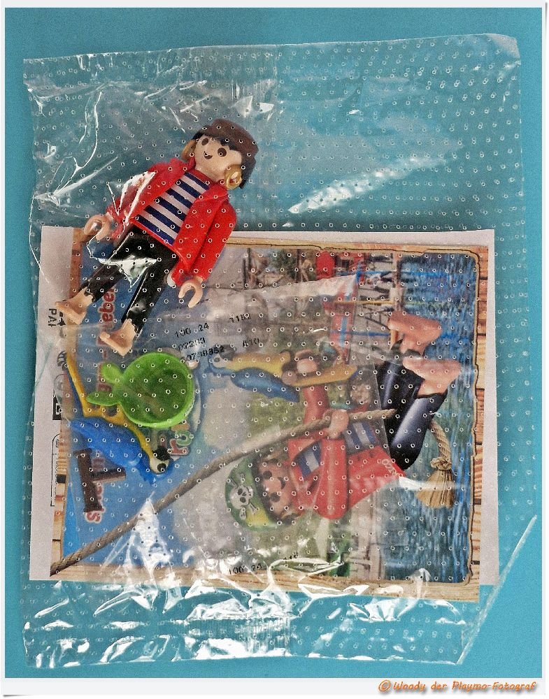 Zusätzlich hat Rico statt dem üblichen Papagei einen Pokal dabei und es fehlt auch der playmobil FunPark Einleger.