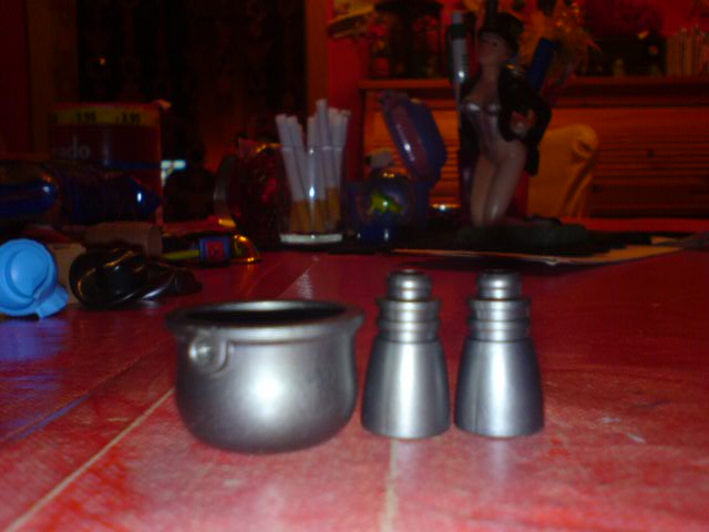 Das linke ist wohl definitiv ein großer Kessel ohne Henkel, wie er z.B. in der Krippe 3996 vorkommt: