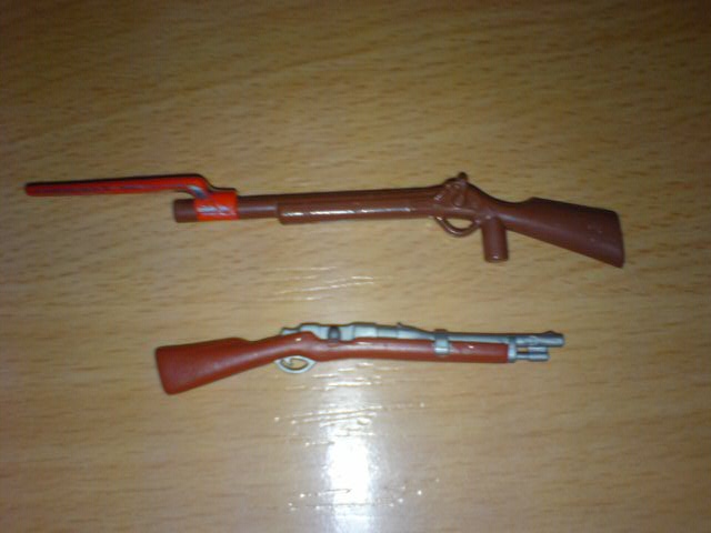 Das erste Gewehr im unteren Bild könnte eine Springfield Carbine darstellen, wenn auch alles andere als detailgetreu umgesetzt.