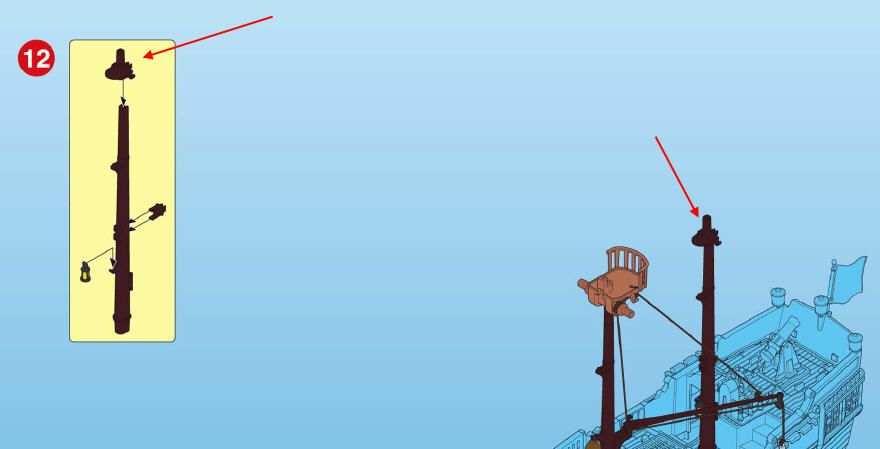 ich muss das obere Teil, dass die Wanten und das Gaffelsegel hält, bei meinem 4290 ersetzen. Mein fünfjähriger Sohn ist auf das Schiff gefallen