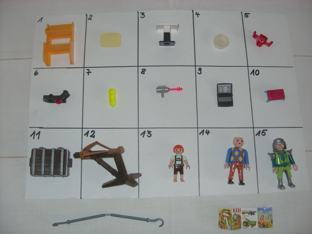 Zu 2.) Das ist ein kleiner Block zum Schreiben. Ist das Playmo? (Bei der Post gab es mal ähnliches).