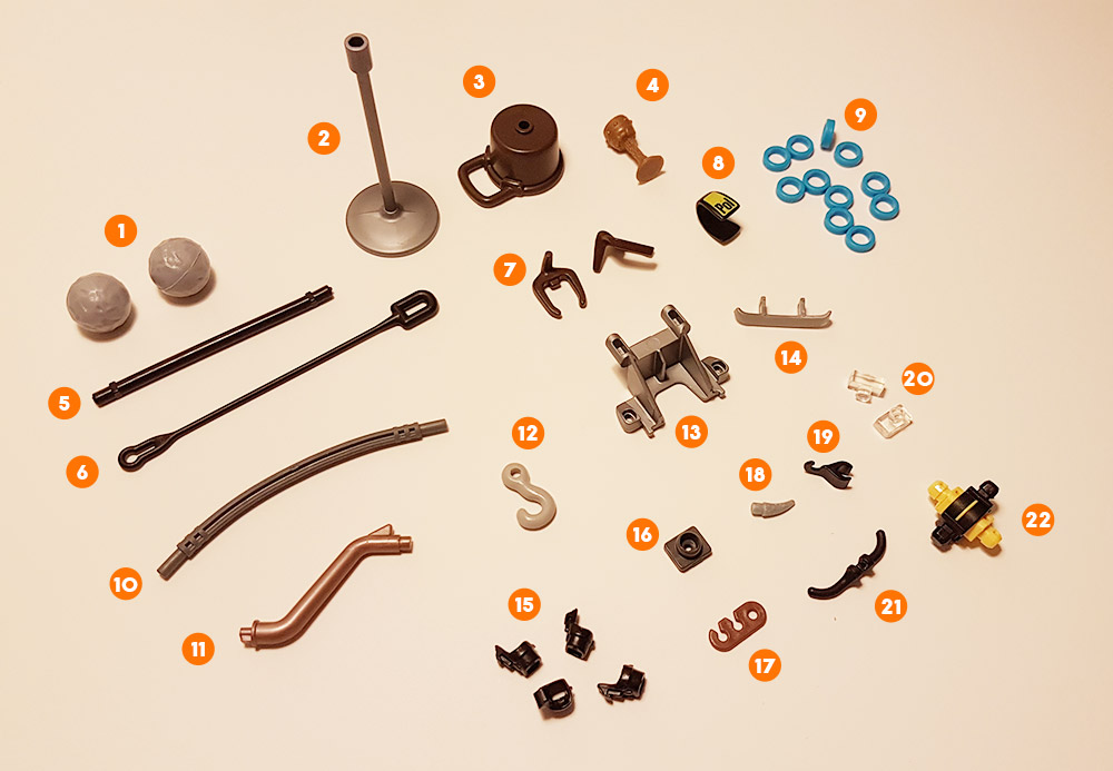 Nr. 16: Das ist ein SysX-Nupsie, der wie die roten Nupsies eingesetzt werden kann. Dieser hat im Vergleich zu den roten Nupsies die Möglichkeit, dass man angeklipste Teile drehen kann.