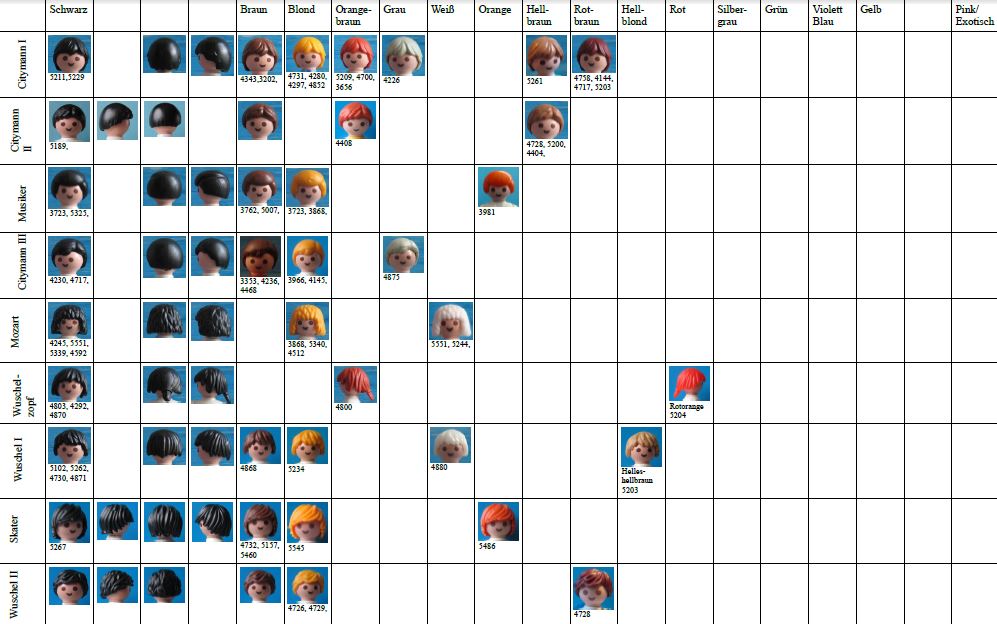 Sicherlich werden sehr viele Playmobil-Sammler Freude an dieser Frisuren-Galerie haben.