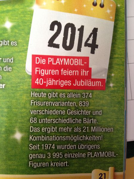 Laut Playmobil-Jubiläumsmagazin soll es aber 374 geben: