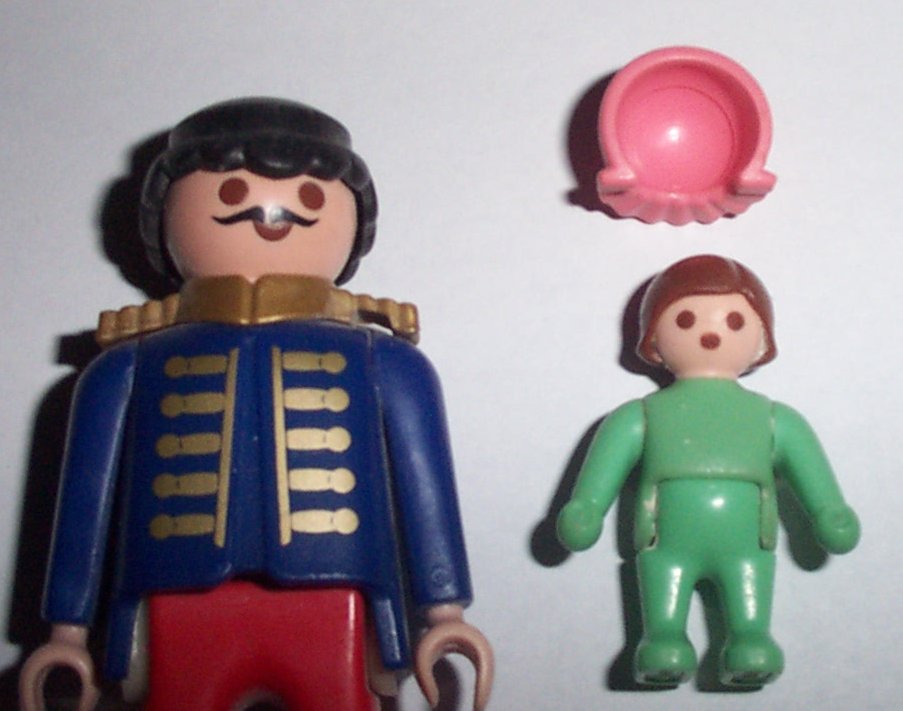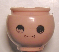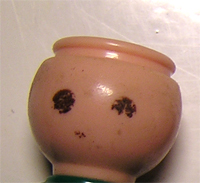 Bild 2 zeigt den Kopf meines allerersten PLAYMOBIL-Bauarbeiters, den ich 1974 im September zu meinem 5. Geburtstag bekam, Bild 1 einen etwas besser erhaltenen Kopf aus der gleichen Zeit. Die Gesichter sind noch nicht geprägt, sondern nur aufgedruckt.