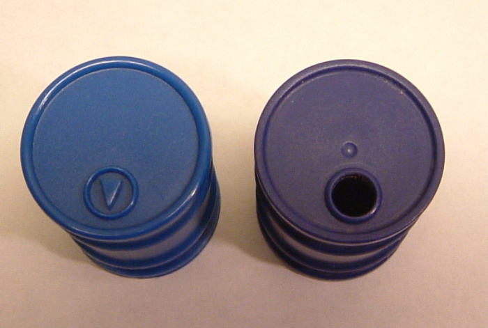 Könnte es diese Tonne sein http://collectobil.com/catalogue/items/3180.htm ,bei der vergessen wurde, das Loch zu bohren?