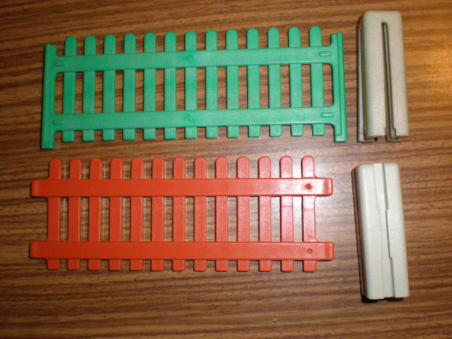 Die braunen haben andere Pfosten, die gewissermaßen Ähnlichkeiten mit den Steckteilen für die Burgzinnen haben. Es kann nichts mehr brechen, dafür sind auch die Zaunteile selbst anders.
