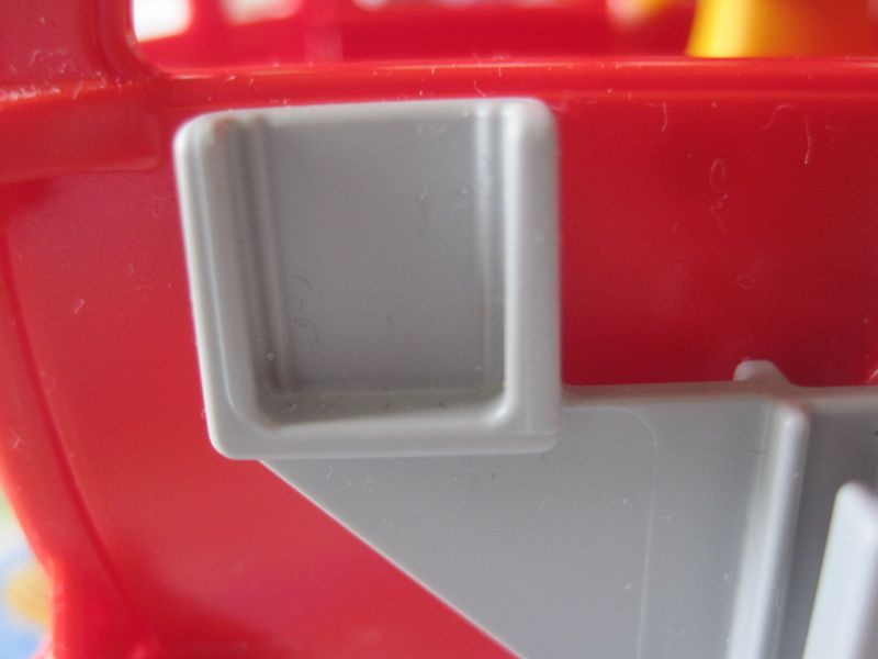 die roten "Schienen" in der Gondel sind für Kinderbeine, damit die auch mitfahren können!!!