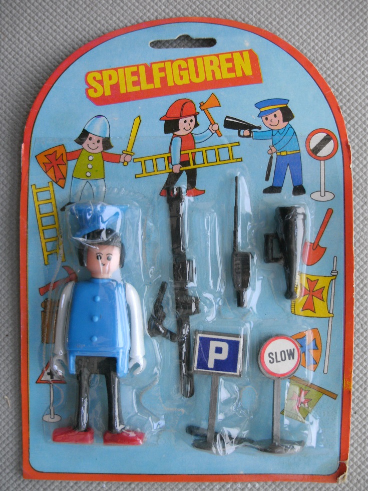 Ich habe auch einige von diesen Figuren. Figuren mit dem Gesicht, Haaren, Knöpfen auf dem Oberkörper, drehbare Füße usw. sind identisch. Das Handfunkgerät gab es auch beim Polizeilaster.