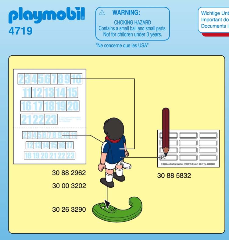 Habe die letzten Tage mal meine Fussballersammlung sortiert (ist ja bald wieder WM). Dachte eigentlich, ich hätte alle aus 2008. Was ich aber nicht habe, ist ein Fussball er 4719. Und in der playmodb wird auf einen 'französischen Fussball verweisen. Kann aber nicht sein, da die französischen Spieler die Nummern 4710/4711 haben.