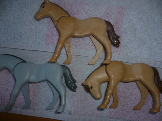 Die sind von dem neuen Planwagen (Waren da teilweise drinnen) . Hab auch 20 oder so. Wenn diese Pferde (2. Generation) keine Vertiefung haben passen die Sättel der 3. Generation.