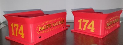 Der Stadtbahner hat gleich mit dem ersten Beitrag getroffen und der Heilige Hans hat korrekt nachgelegt: Der linke Tender ist beklebt (wenn auch sehr sauber), der rechte bedruckt.