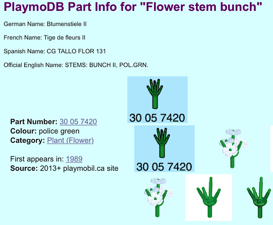 Im Set 5601 (Hochzeitskutsche) ist ebenfalls der "Blumenstiele II" 30057420 enthalten, siehe Bauanleitung (30803540) des Sets von 09.94. Die anderen Bauanleitungen (5340, 5350 oder 5400) habe ich nicht vorliegen.