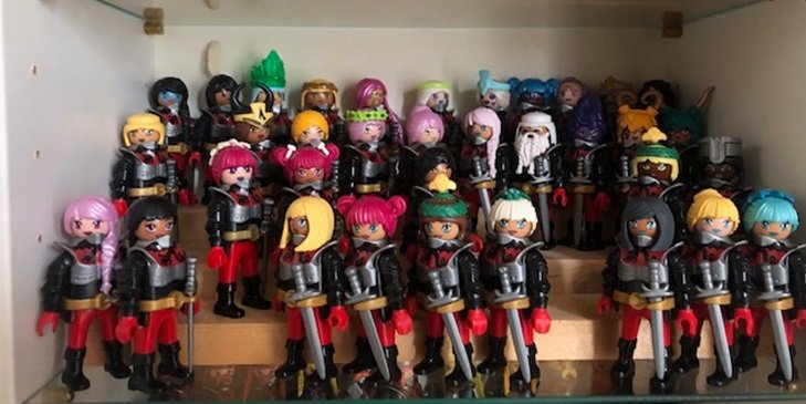 Ich glaube, ich habe alle verschiedenen Köpfe, die Playmobil bis vor etwa zwei Jahren produziert hat. Von da an bis jetzt fehlen mir nur noch sehr wenige und ich vervollständige die Sammlung nach und nach. Einige Köpfe widerstehen mir, wie die von Angelo aus der Dragons-Serie, der im Set 71082 enthalten ist. Wenn jemand eine solche Figur übrig hat, wäre ich sehr dankbar.