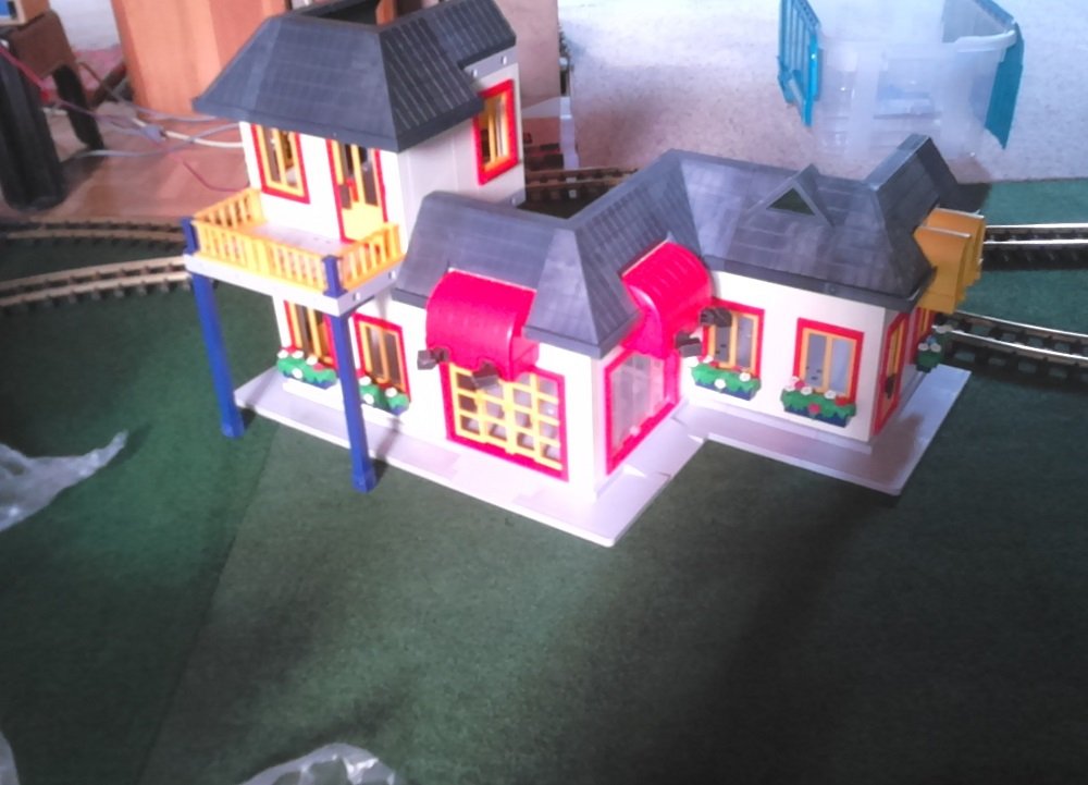 Ich konnte das Haus zusammenbauen und teile anbei ein Bild - ist in echt noch schöner als auf dem Bauplan. Die drei einzelnen gelben Pfeiler beim Fahrstuhlgeländer habe ich (noch) nicht, wurden derzeit noch durch blaue ersetzt. Leider kommt es jetzt abgebaut in den Keller.