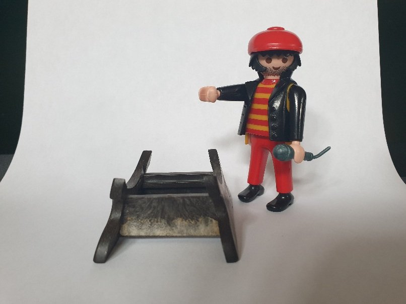 Hallo playmocacher, das sieht aus wie ein Handmuster/ Prototyp den ich mal vor vielen Jahren gesehen habe. Es gab ihn in dunkelbraun für die erste Version eines großes Bierfasses das aber nie in die Serienproduktion ging und es gab den gleichen Typus auch noch als Handmuster in hellgrau (das ebenfalls nie die Serienreife erlangte) für die großen Kabeltrommeln (z.B. in 3205 von 1975 oder in 3400 von 1976). Bei dem Bierfass hat man sich dann aus Kostengründen erstmal für ein kleine Version eines "Fässchens" entschieden (3386 von 1978) und hat die Pläne für das große Fass und den Fasshalter in der Schublade verschwinden lassen (und sie meines Wissens nach erst wieder für das "Räubergelage" heraus geholt. Da war dann der alte Fasshalter in Form und Design aber schon überholt und obsolet und man hat sich eine neue, moderne Variante erarbeitet die man auch auf die neuen einachsigen Karren verladen kann. Ich vermute das es sich um einen dieser Prototypen handeln könnte. Wo hast du das Teil denn her?! :gruebel :smile