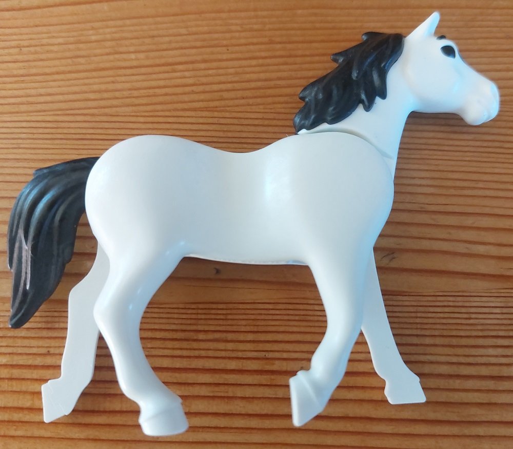 dieses Pferd wurde produziert, bis man festgestellt hat, dass es weiße Pferde mit schwarzer Mähne nicht gibt.