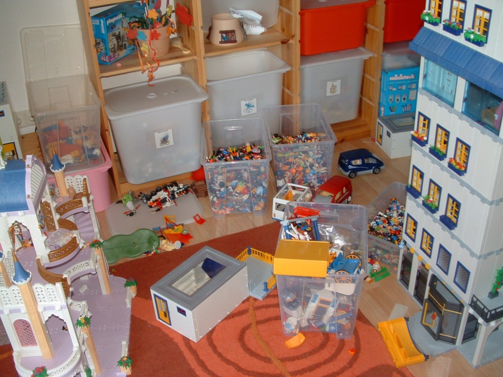 im Flur, einen kleinen Kellerraum und die ganzen Kisten für die Playmobahn vergessen