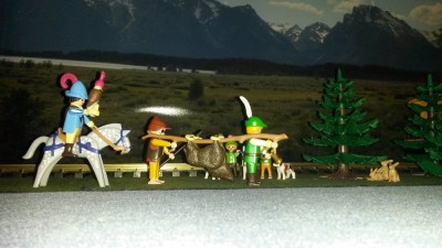 Ich finde das Arrangement aus 6464 "Outlaws", 6564 "Alpine hunting" und ???? "drei Palmen" ergibt eine schöne Waldszene. Zusammen mit dem Hintergrund von Gabi...