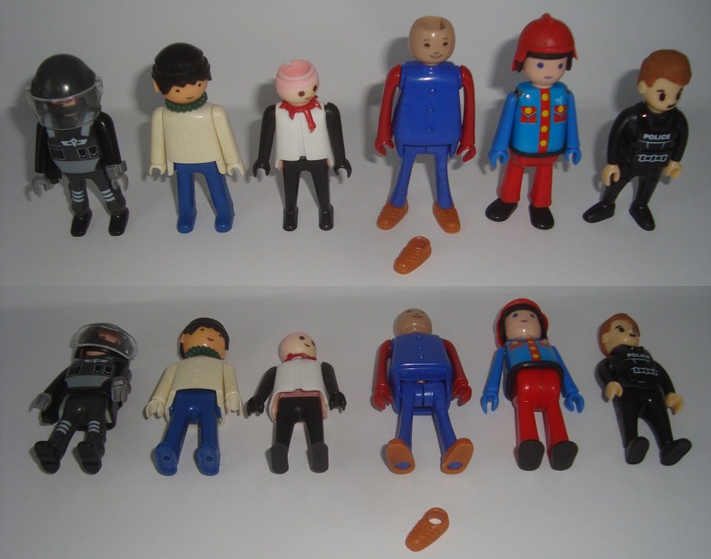Von den Bildern her würde ich vermuten, daß die Spurweite ca. 32mm ist (das wäre z.B. wie die Fallerbahn). Auch die Lok und Waggons könnten ungefähr die Faller-Abmessungen haben. Bloß beim Maßstab vermute ich, daß es keine Schmalspurbahn ist (wie meine Fallerbahn, die zwar auf "kleinen" Gleisen fährt, aber in der Größe zu Playmobil paßt), sondern daß der Zug im Maßstab von ca. 1:43 gebaut ist. Das wäre dann ca. die halbe Playmogröße. Doch das ist jetzt nur mal aus den Bilder + Maßen geschätzt -ich bin gespannt, ob ich auch nur ansatzweise richtig damit liege.Maße