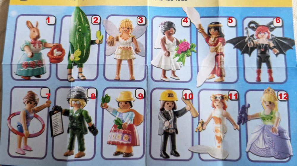 Ich habe zwar noch nicht alle, aber einige konnte ich in dem kleinen 24er-Display (2x12) in unserem Spielwarenladen ertasten: