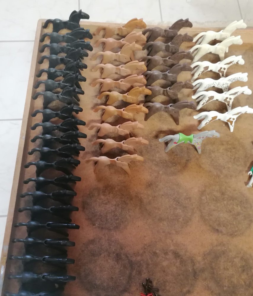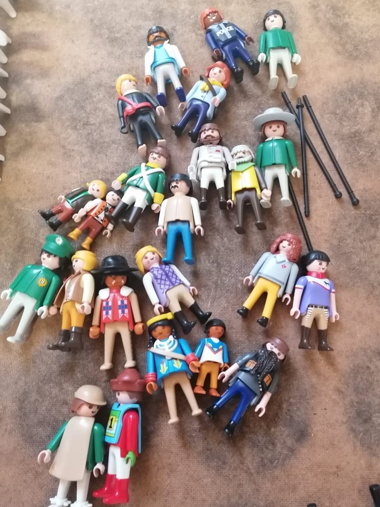 Unter dem Tisch eines Verkäufers war eine Kiste mit Plastikspielzeugresten. Der braune Verbinder hat mich angelacht und ich hab die Kiste durchsucht. Der Verkäufer wollte mir einen guten Preis machen. Nach gut 20 Minuten wühlen und sortieren war das meine Ausbeute und ich 15,- € los. So ein Schnäppchen grad nicht aber ich war zufrieden und der Verkäufer auch. Da er nix anders von Playmobil dabei hatte, hat mich die Vielfalt der Sets die da mit einzelnen Teilen vertreten sind echt überrascht. Michael