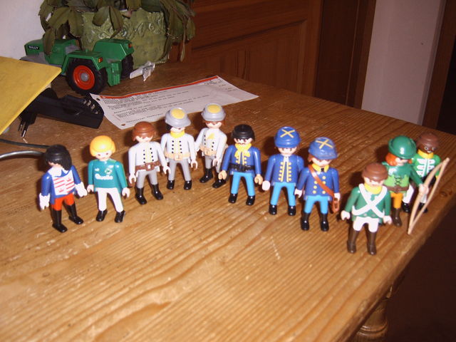 Hi, als ich heute über denFlohmarkt schlenderte sah ich einen sehr guterhaltenen Belagerungsturm. Ich frage nach dem Preis und die Antwort vom Verkäufer "Den kannste für 1,50 mitnehmen!" :grinsen Kohle raus, schnell bezahlt und weiter gings. Und gleich nach ein paar Ständen, das nächste Playmo. :kicher Und diesmal wars sogar der etwas neuere Saloon. (Nicht der Golden Nugget und auch nicht der Allererste, ihr wisst schon der mit dem gelb-rotem Schild.) Der Preis war :bang1 11€ (!) :bang1 Den konnte ich einfach nicht stehen lassen. Jetzt hab ich nen doppelstöckigen Saloon. :pfeif Ach ja, bis auf das Männchen ist alles dabei, auch der Tresen, die Schilder und die Regale. :bang1 Und dann bei einem anderen Stand noch eine Playmo-Hochzeitskutsche für 1,50€. Fast komplett bis auf die Pferde. Für mich ein sehr erfolgreicher Tag. :smile
