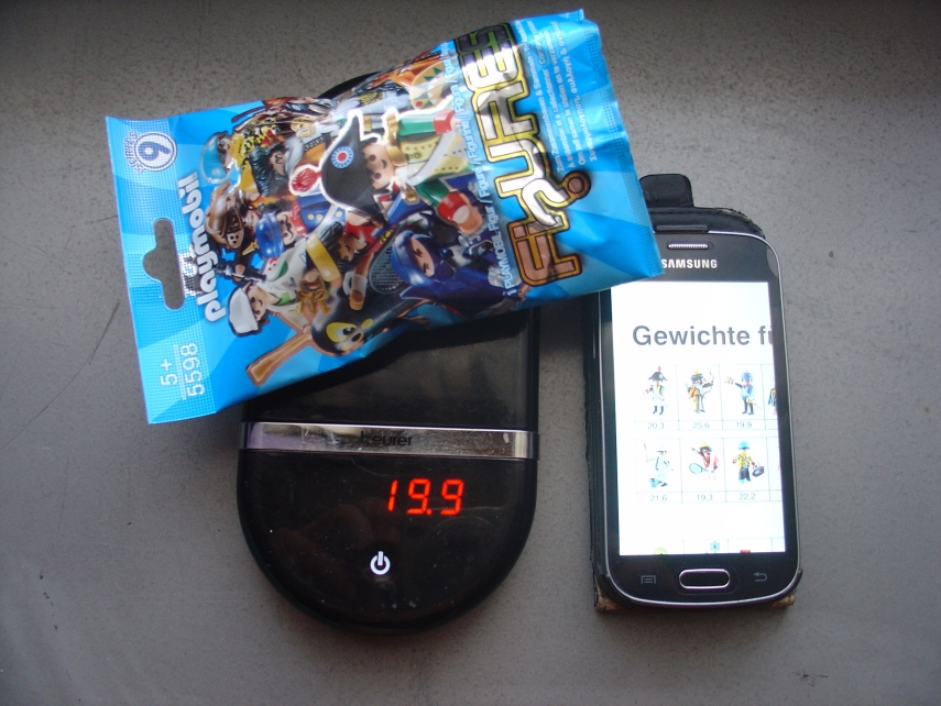 Und sobald ich mich erstmal warm gefummelt habe (klingt irgendwie komisch :oops) brauche ich pro Tütchen ca. 5-10 Sekunden um ganz sicher zu sein, falls nicht gerade in der Serie zwei Figuren mit nur minimalen Beigaben drin sind wie z.B. die Sängerin in Serie 1. Ich kann mir nicht vorstellen, dass man mit der Waage wirklich schneller ist, vor allem wenn man die beschriebenen Risiken mit einbezieht.