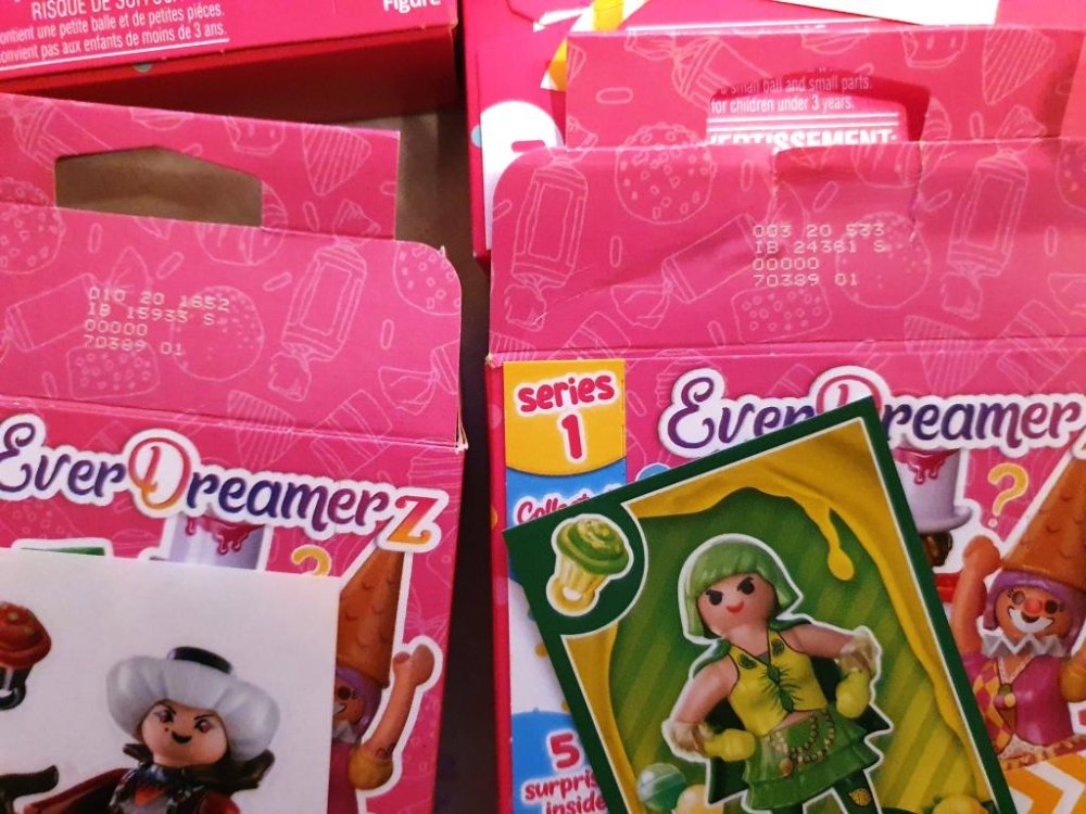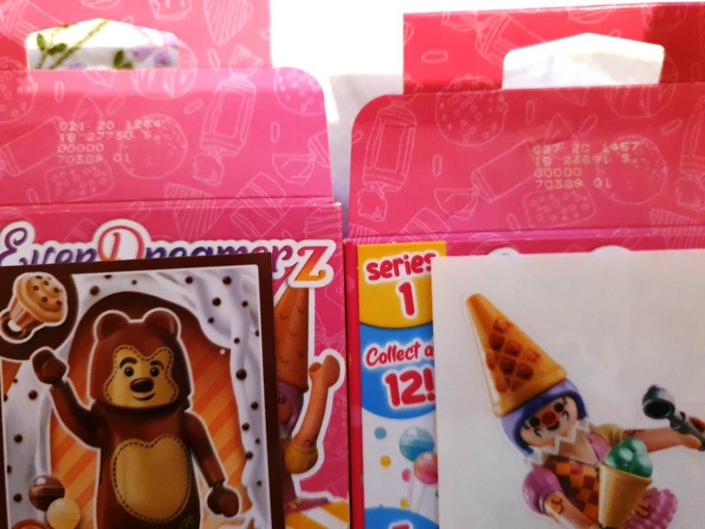 - manche sind etwas ausgebeult. Ein Teil des Inhalts ist minimal dicker als die Schachtel und drückt gegen die Seitenwände. Solch eine Schachtel habe ich mitgenommen. Enthält sie Mrs Milkshake oder den Cookie Bären? Ich hoffe es... :gruebel